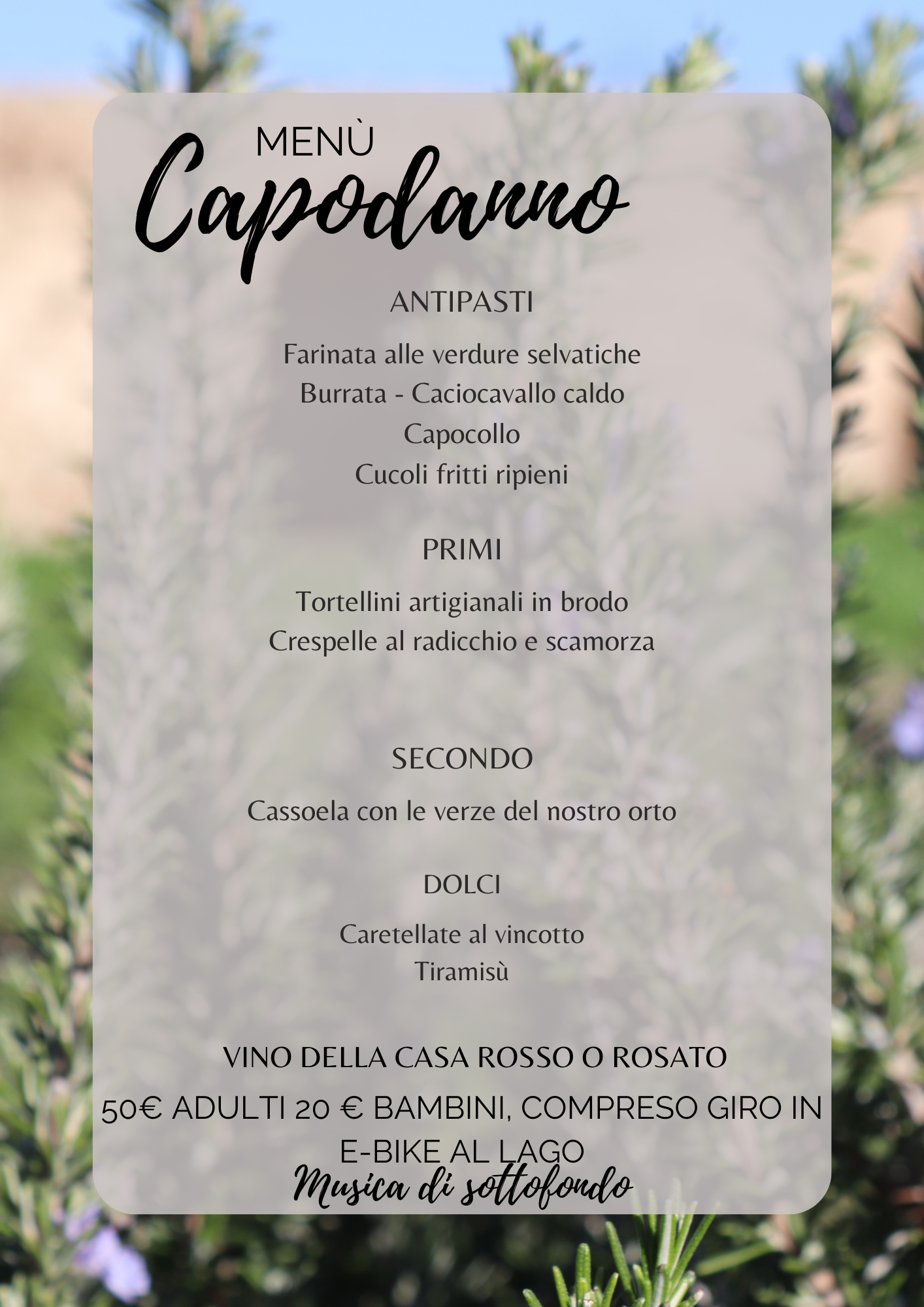 Nel corso del concerto sarà servita una cenetta a km0 con antipasto, primo e dolce.