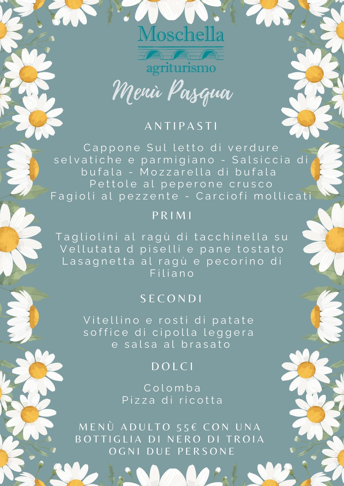 NB E' possibile trascorrere il pomeriggio in agriturismo senza pranzare.
