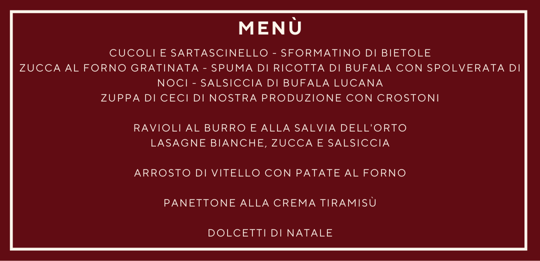 Per accogliere il nuovo anno, un San Silvestro e un pranzo di Capodanno in campagna, una proposta in linea con le nostre idee: un pranzo in famiglia e/o con gli amici, all'insegna del cibo di stagione, del calore e dell'accoglienza.
